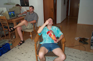 | Bei solch motivierten Gegnern muss Uwe sich erstmal dopen. Geht am besten mit Kartoffel-Chips. | ![]() |