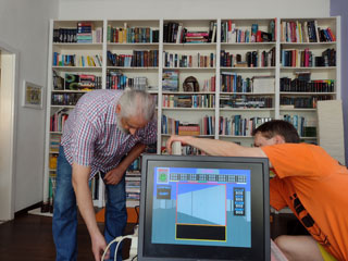 Erhard versucht es mit gutem Zureden, aber der bunte Kasten mag einfach nur Streifen. |